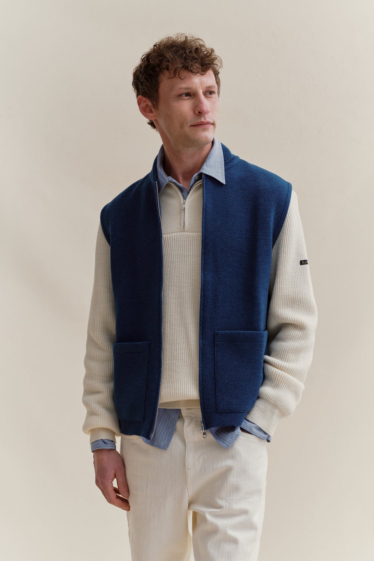 Men's Milano denim blue zipped vest - 300,00 €