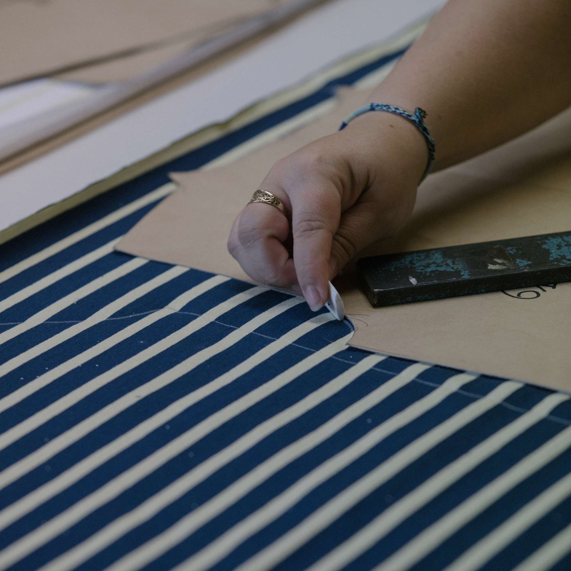 Le coton qui compose cette marinière déstructurée est filé dans les Vosges et teint dans les Pyrénées. Dès l'arrivée de la bobine de fil dans nos propres ateliers intégrés, celui-ci est tricoté en jersey sur nos machines circulaires des années 60. Le tissu est ensuite coupé et assemblé au même endroit. Ce qui en fait une marinière 100% française.