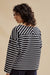 The loose fit, the oblique stripes at the top of the back and the wooden button are all details that allow us to revisit this feminine in a modern way. The knitting technique used allows for a tighter knit and thus a thicker feel and look. Our Mona blouse is about 5cm shorter than our traditional marinières.