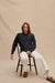 Le Minor propose une gamme de pulls dits Norvégiens, pour leur inspiration scandinave, qui se traduit par des petits chevrons qui viennent s'apposer sur la maille du pull, ici en ton sur ton. Ils se déclinent en deux coupes différentes, col rond ou col roulé. Nos cols ronds ont un col remaillé, c'est-à-dire qu'il va être assemblé par la suite maille à maille, après que le corps ai été tricoté. Le remaillage est une tâche qui demande beaucoup de précision et d'attention, il faut être très minutieux.