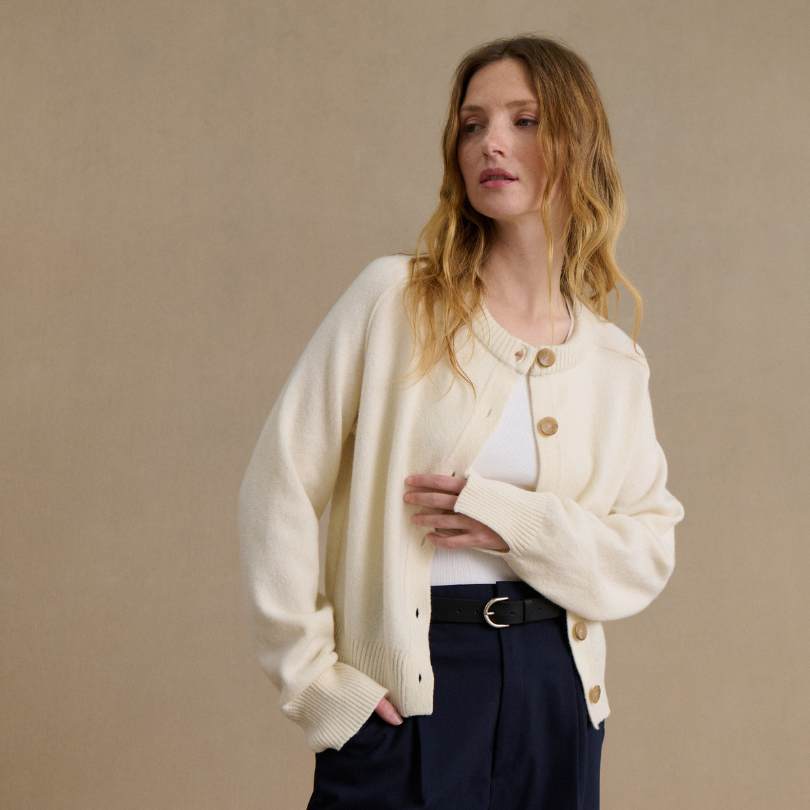 La laine mérinos extra fine, délicieuse et légère, est utilisée pour fabriquer notre gilet féminin et ses 8 couleurs différentes pour la mi-saison, dans nos ateliers intégrés situés dans le Morbihan. Les manches ouvertes offrent un confort exceptionnel grâce à leurs fentes élégantes, tandis que la surpiqûre aux épaules, qui met en évidence les têtes de manche, apporte une note féminine au style final du vêtement, donnant une polyvalence remarquable.