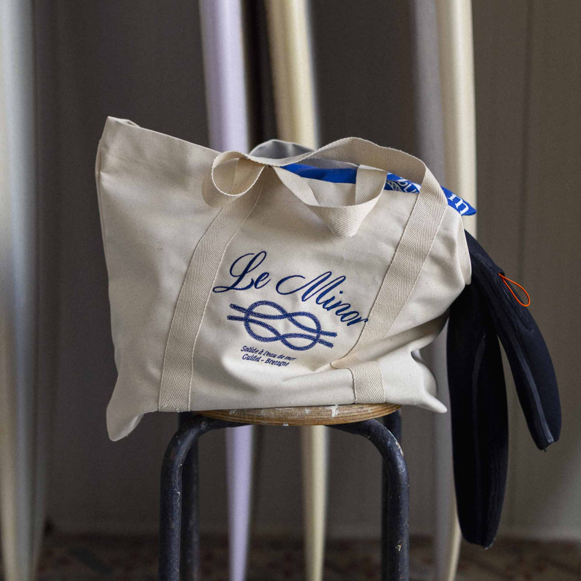 Pour créer ce tote bag, la maison Le Minor s'est inspirée de son histoire. Marqué d'un ancien slogan de notre maison bretonne, ce cabas porte les marques de notre identité : une toile de coton robuste, filée et tissée dans les Vosges, et une broderie qui rappellent le premier métier de l'atelier centenaire Le Minor.